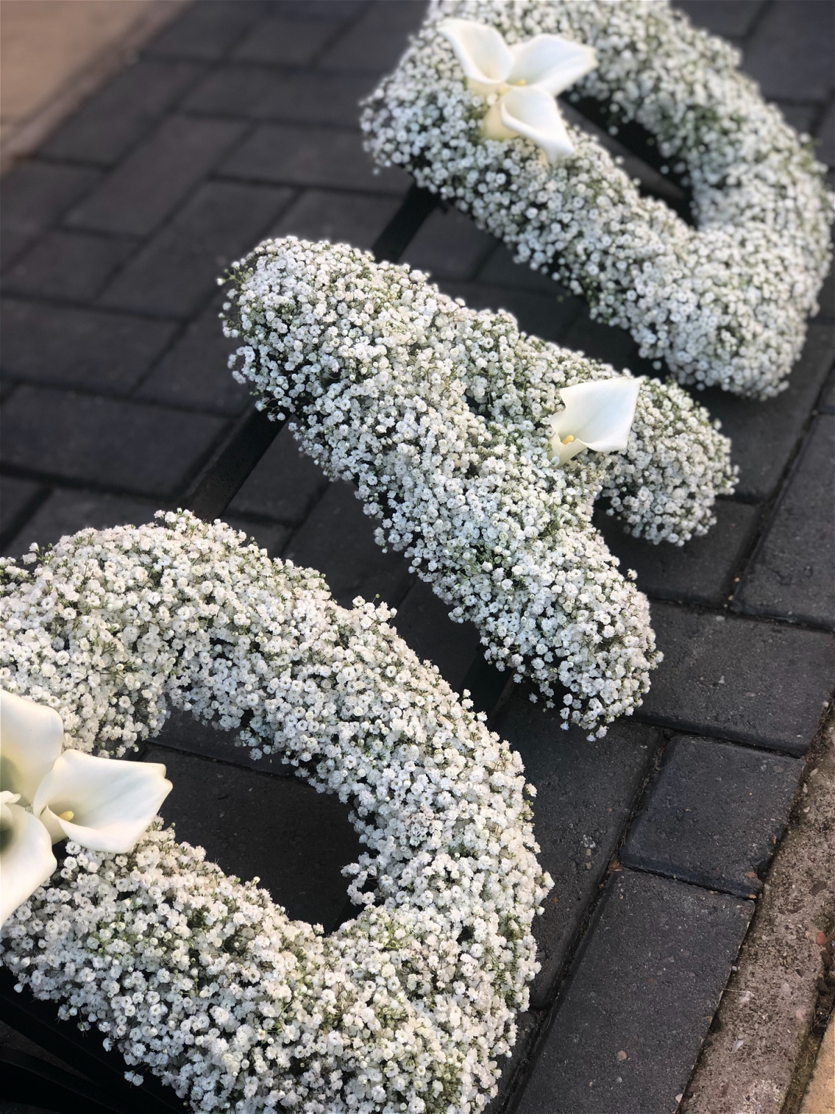 Each letter is accented with a Rose or orchid in a colour of your choice.