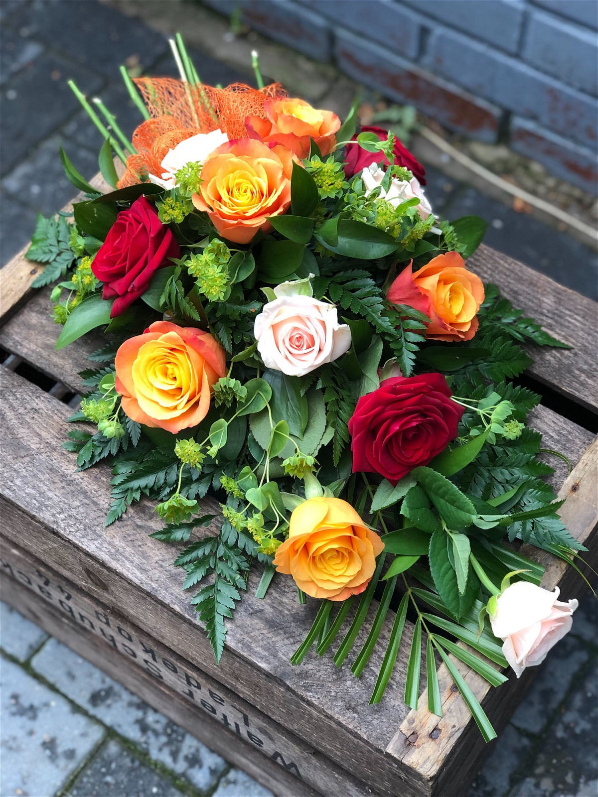 A sheaf of the best roses with seasonal foliage’s in a selection of colours.