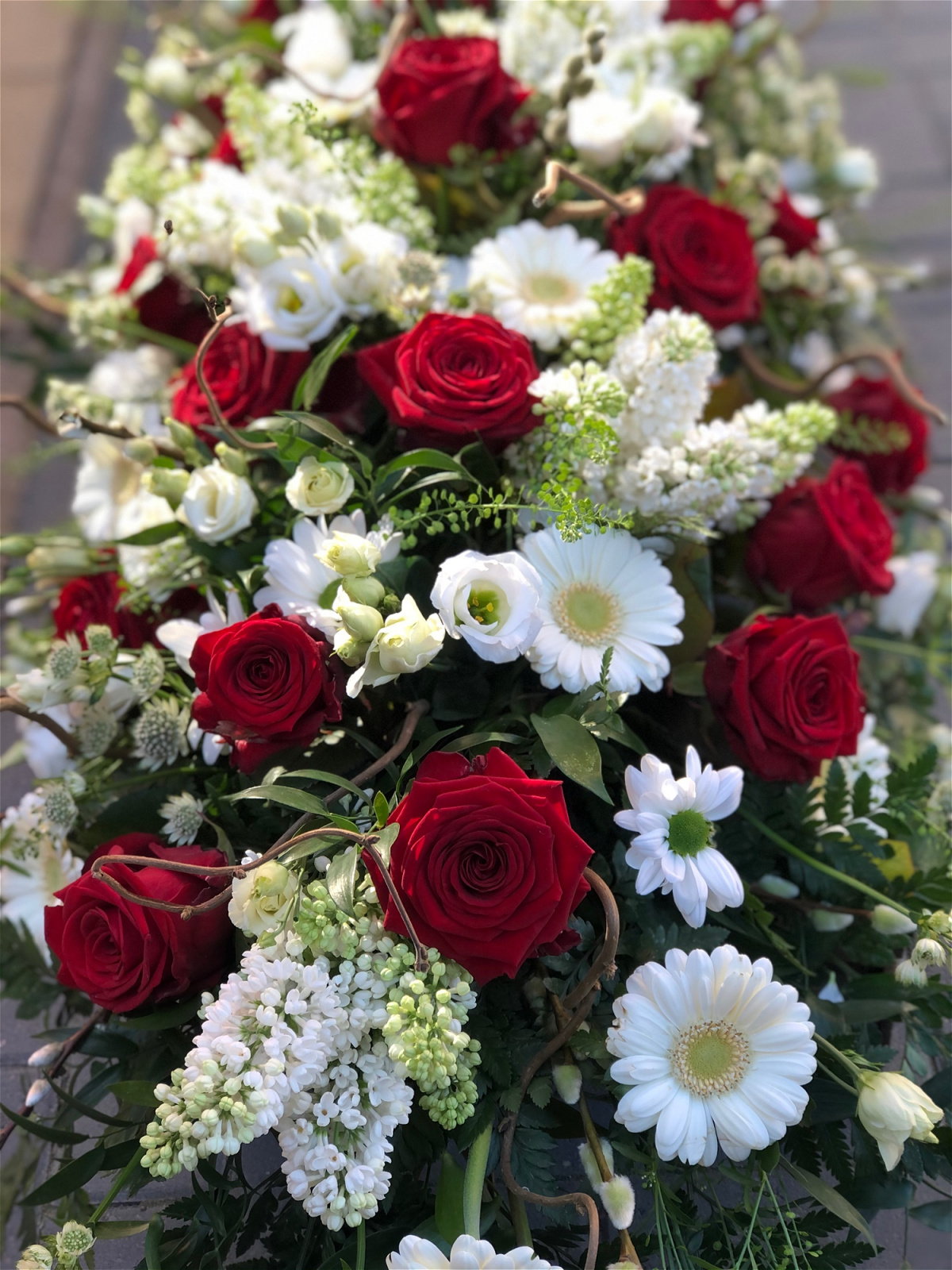 All funeral flowers are delivered locally by Vanilla Blue Flowers.